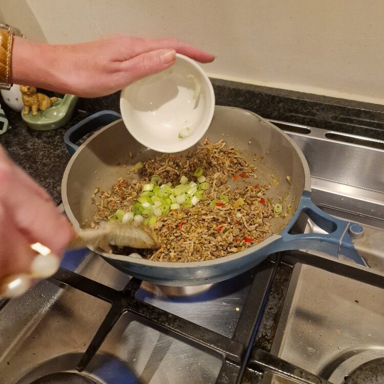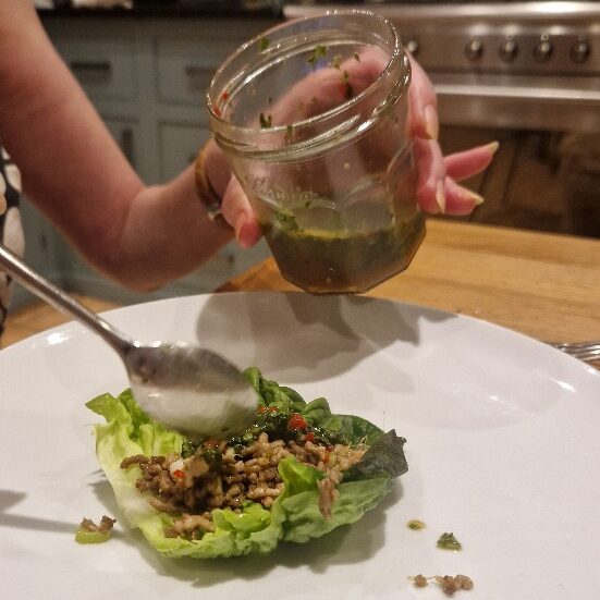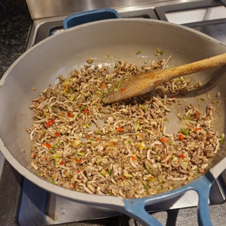 We’ve only recently started to cook this but it has already become a real family favourite. These chilli beef lettuce wraps are very similar to ones that Bibi and Emily would have at their favourite Chinese restaurant, and that Bibi would sometimes re-create at home. This one isn’t her original recipe, but a spicier one we love.