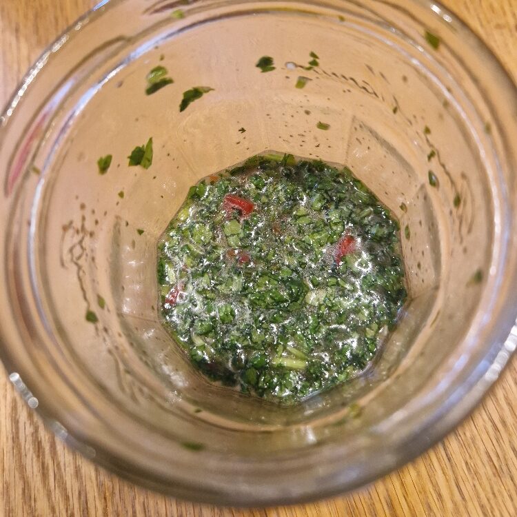 Stir in the about a teaspoon of the chopped chillies (or to taste), and the coriander. Taste and adjust with any of the flavours – lime, soy, fish sauce, sugar etc until you like it. Your dressing is ready!