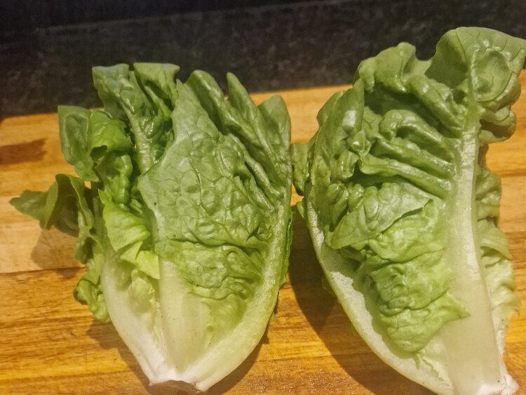 - Cut the bottom of the stem from the lettuce, and separate into leaves. Reserve in a serving bowl.