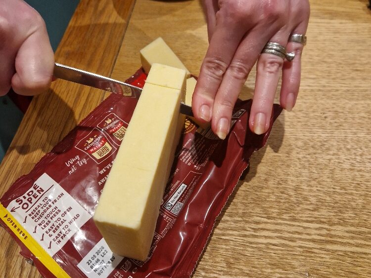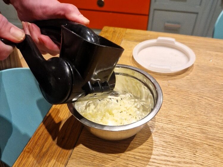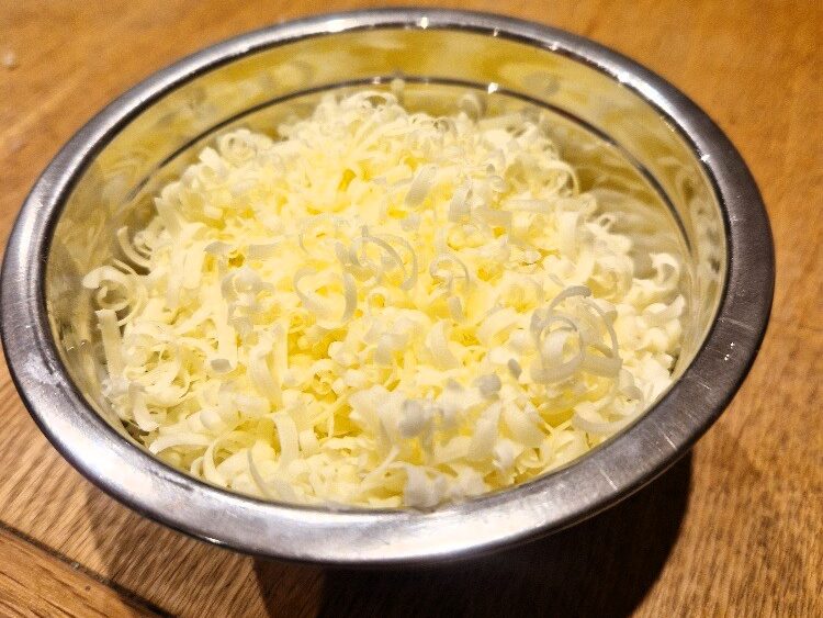 Just before serving, grate the cheese. You can use any cheese you like, but today we used cheddar.