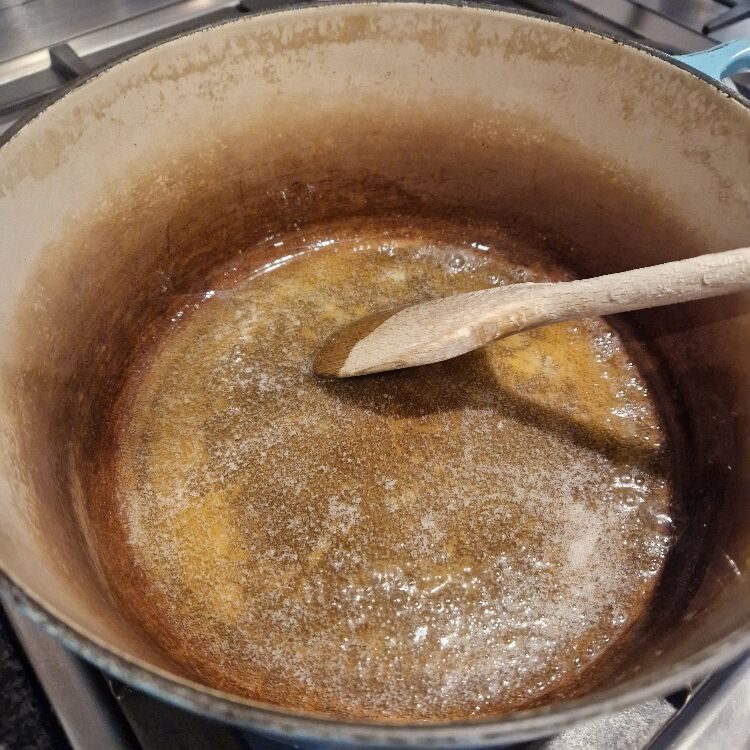 We’re going to use more fat in this recipe that we normally would for frying (usually only 2 to 3 tablespoons), but here we need more for when we later add the rice. Heat until the butter is melted and sizzling, and you can also test if the pan is hot enough by putting your hand over it. If you can feel the heat on your palm from quite high up, you are ready to cook.
