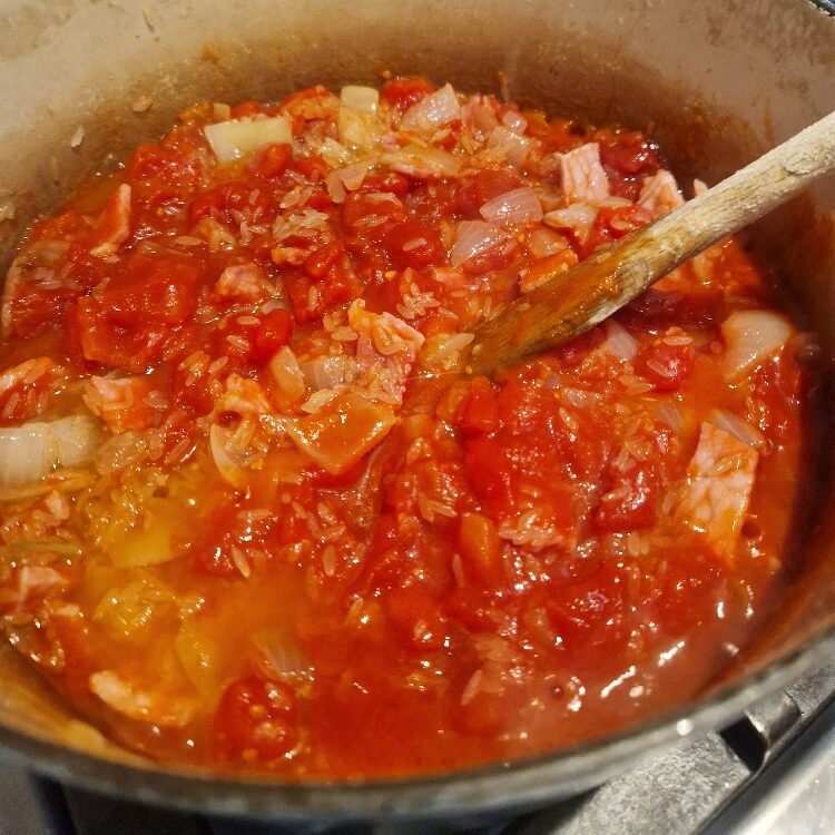 This easy dish is exceptionally tasty, rich with tomato, bacon and cheese flavours, and a good starter recipe when learning. It’s really more of a pilaf, but Bibi called it risotto.