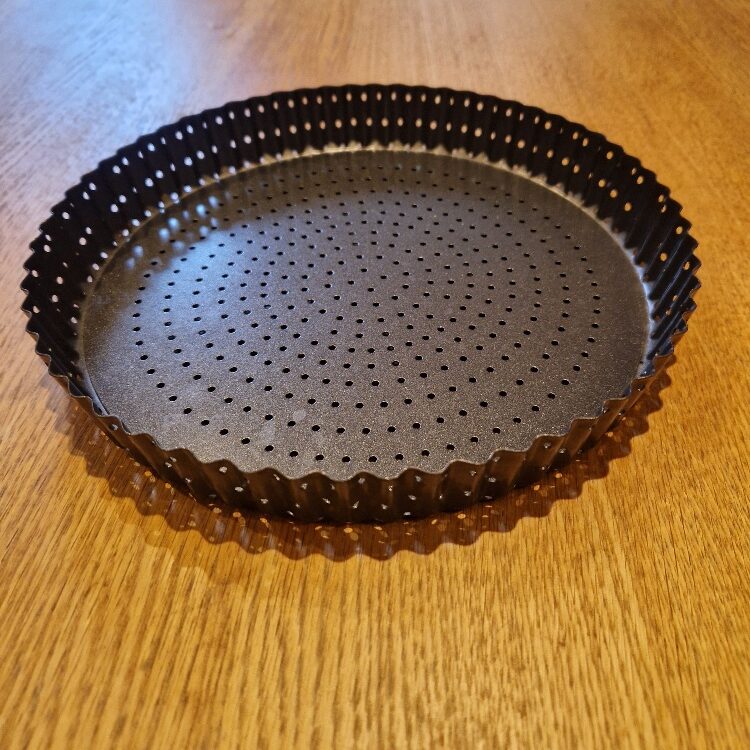 Flan tins have fluted edges. They needn’t have holes in like this one, but they should have a loose bottom